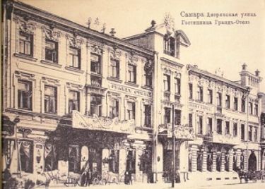 С 16 ноября 1908 г. по 1917 г. здание арендовал Н.Н. Шемякин под гостиницу «Грандъ-отель». Номера указывались «лучшими и роскошно обставленными» с электрическим освещением и постельным бельем от 1 р. 50 к. до 6 р. в сутки. Клиентам обещали «безукоризненную чистоту и покой», ко всем пароходам и поездам высылались автомобили и комиссионеры.